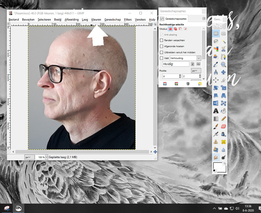 Over hoe je Gimp gebruikt maakte ik een korte video. Het programma zelf is als het ware zwevend over jouw scherm. Als je op de afbeelding ziet. Overigens kun je nog veel meer met Gimp als uitsneden maken, knippen en plakken met afbeeldingen en formaat wijzigen. Hoe je contrast aanpast zie je in de video.