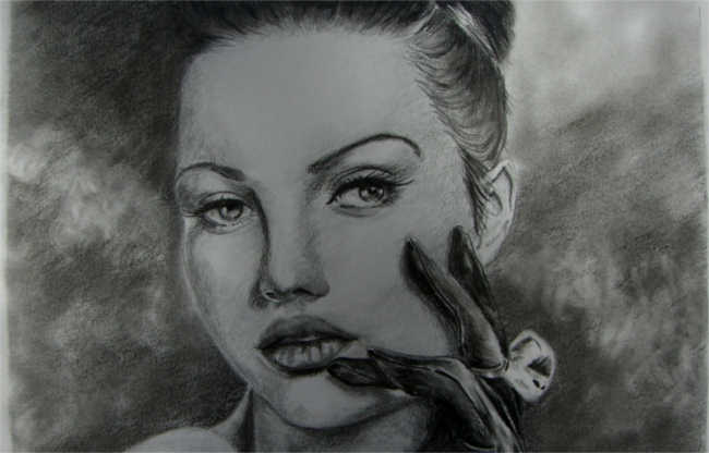 je tekent de schaduwvlakken en hier en daar een losse haar. Die hier en daar maken juist dat het net echt lijkt.