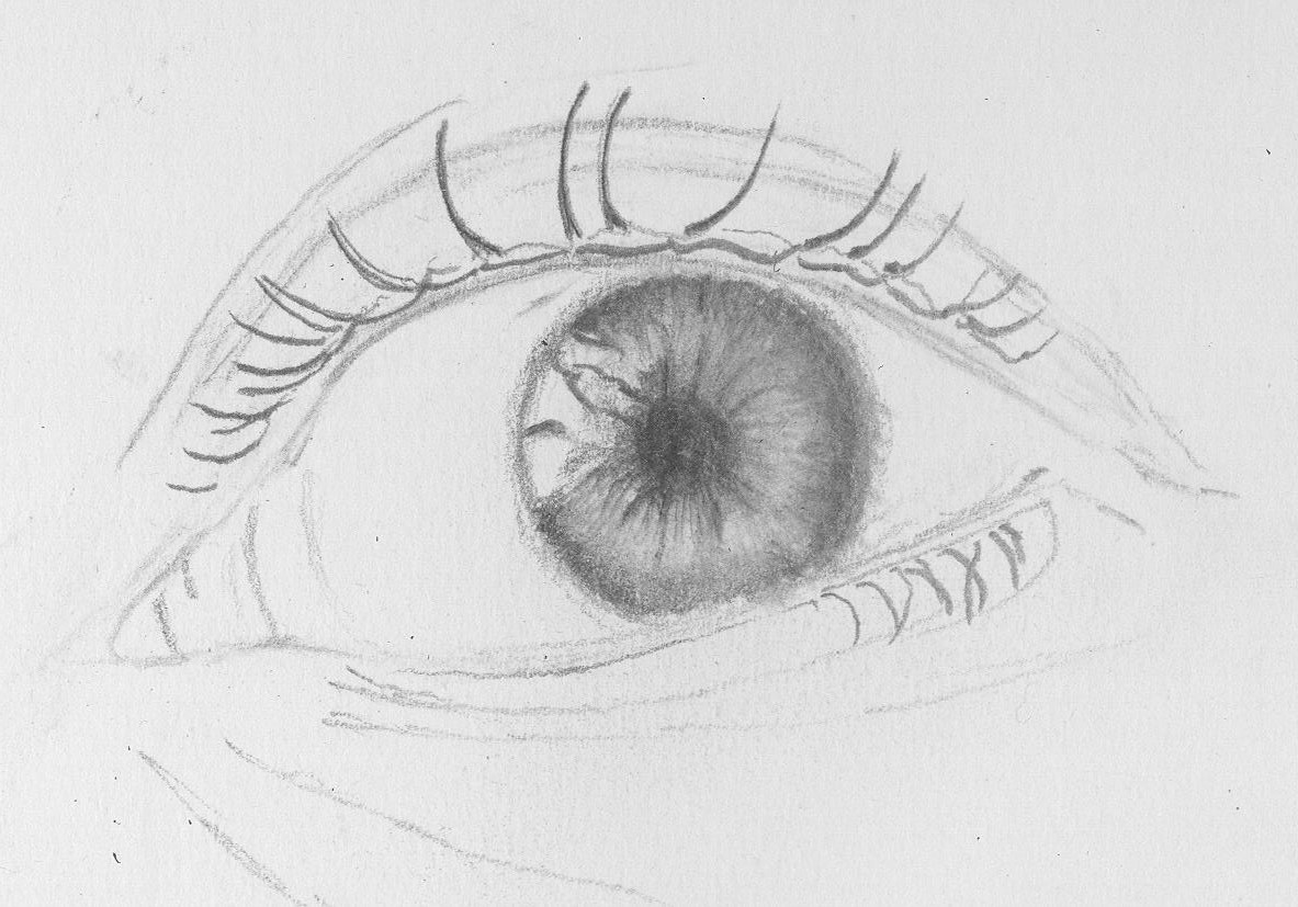 Als je pas begint ben je geneigd wimpers te tekenen als kleine harkjes. En liefst nog met evenwijdige stokjes. Een beetje zoals de tekening die ik maakte hieronder. In deze scherpe punt antwoord op: